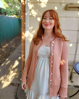 An understated, comfortable shape in combination with some outstanding, but simple to work, rib details and inventive button placement.