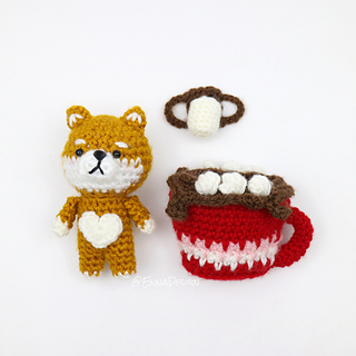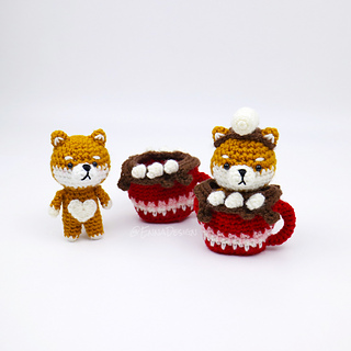 - Finished Size with indicated yarn weight and hook size Shiba: 2” W X 4” H (5 cm X 10 cm) Hot Cocoa: 3-1/4” W X 2-3/4” H (8 cm X 7 cm)
