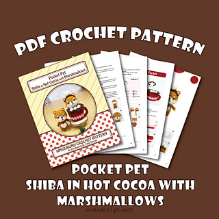 The Pocket Pets series features palm-sized pets nestled in cozy, playful pockets for fun crocheting. This pattern features a charming Shiba Inu relaxing in a mug of hot cocoa filled with marshmallows. A detachable ‘marshmallow-on-top’ hat with an oversized marshmallow adds a whimsical, kawaii touch. As delightful to craft as it is to admire, it’s perfect for crafters who adore playful, one-of-a-kind designs. Combining the cuteness and charm of a Shiba Inu, this pattern creates a delightful project and makes a truly unique gift.