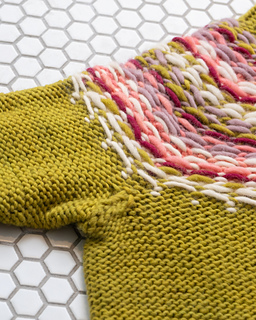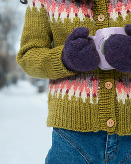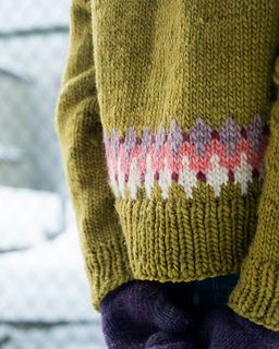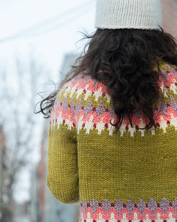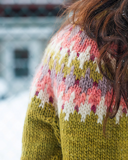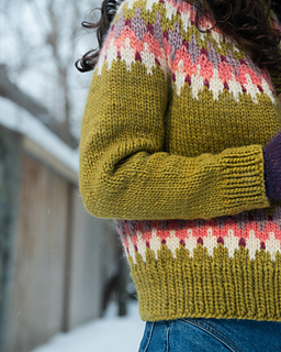 STEEKING - The steek consists of 7 stitches at the center front of the knitting, corresponding to the beginning of the rounds. When working the colorwork pattern, do not weave in your ends in the center of these 7 stitches (or wait until after you have cut the steek to weave them in).