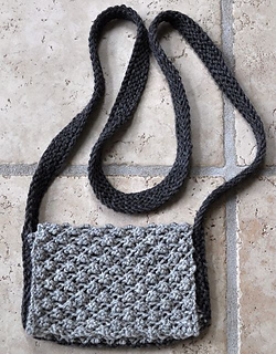 I wanted a small shoulder bag made with the popcorn stitch. I chose garter stitch for the bottom and strap. The strap forms the sides of the bag, so the overall shape is more of a box than an envelope.