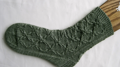 This pattern is for a pair of ornately cabled socks. The cable itself is a Canadian cable,, that comes to us from the creative mind of Annie Maloney. The cable is perfect for socks and the unusual cabling makes them interesting to look at and fun to knit. The back and front are the same until the heel flap.