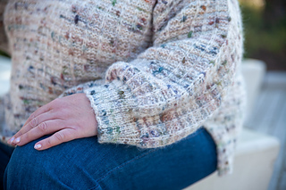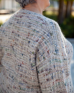 The sleeves are then picked up along the front and back sides and worked in a textured motif to the cuffs.