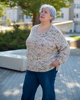 This sweater can be worn with a positive ease of 15 to 22 cm.