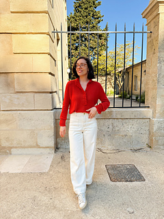 On the picture: size S with 10 cm of positive ease, made with Cashmere Classique from Cardiff, color n°517 Hermes.