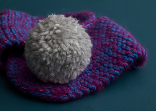 ADULT: Yarn A: Super Soft Merino in Sapphire Blue; Yarn B: Paintbrush Mohair in Wild Boysenberry; Pom Pom Yarn: Super Soft Merino in Oatmeal Gray