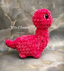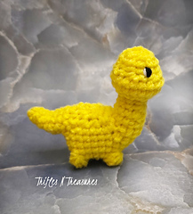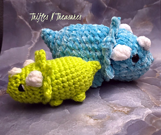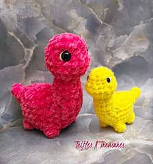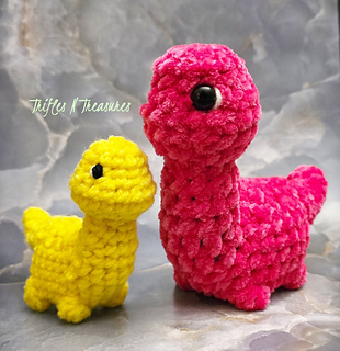 Each little dino only requires 20-30 yds of whatever yarn you like, just use the proper hook size for your choice!