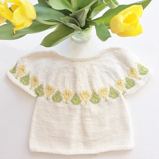 En enkel og morsom kortermet sommertopp med pæremønster og flette med splitt på ryggen. Matcher pæresplittshortsen perfekt. Sammen er de også fine som hentesett til varme sommerbabyer og kan brukes med eller uten tynn strømpebukse og body under.