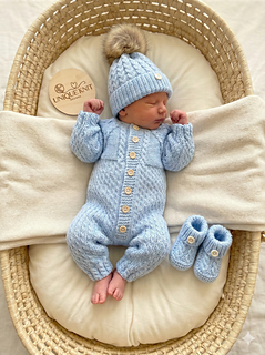 This beautiful romper set is a delight to knit. It’s knitted from the top down on single-pointed needles and has clear line by line instructions. The simple memorable stitch pattern makes this set easy to knit and ideal for knitting whilst watching TV.