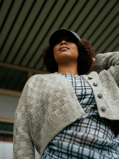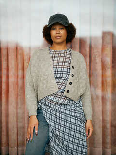 The cardigan is worked flat top down. You begin by working from the back neck, using Stockinette Stitch and Garter Stitch, and shape the shoulders using European shoulder construction. After the shoulder shaping, you continue working toward the underarm, incorporating increases to shape the armholes.