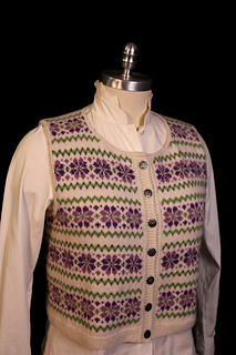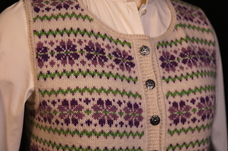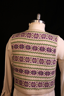 I was inspired by a design I did almost 20 years ago to do a stranded vest in summer colors. The stitch pattern is simple, and by the time I did the last repeat, I had almost memorized it.
