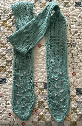Named in honour of my grand niece who was born earlier this year, Rae is my glamorous take on the one hank DK weight scarf. It features pointed ends bejewelled with beaded floats, a main body worked in a subtle stripe texture and slip stitch edges at each side which give the scarf a wonderful, sleek finish.