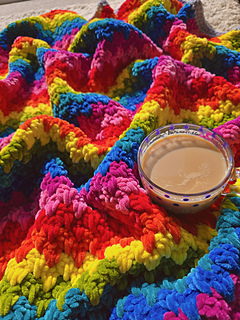 This blanket is ideal for snuggling, gifting, or adding a colourful handmade statement to your home.