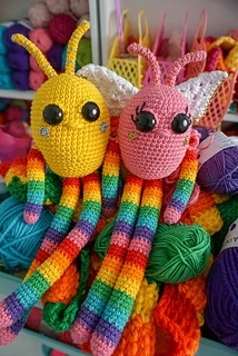 Meet the Rainbow Snuggle Bugs - Bugaboo (Yellow) & Flutterfly (Pink), & Mini Snuggle Bug - Coco! These magical little creatures like to snuggle you in bed & keep you safe.