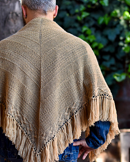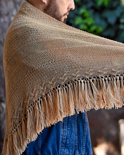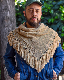 Triangular shawl knitted in homage to the locality of the same name, a territory surrounded by volcanoes where waters converge with untamed nature. Its color, achieved with black tea dyeing, evokes the warmth and embrace of its people.