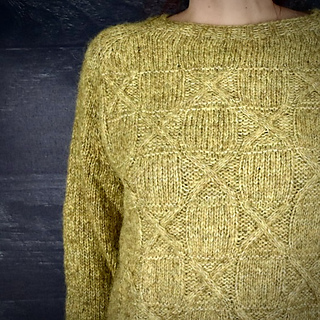 Die Anleitung beschreibt detailliert, wie der Raster 15 Sweater von oben nach unten gestrickt wird. Das Modell basiert auf einer Raglankonstruktion, bei der Körper- und Ärmelweite unabhängig voneinander angepaßt werden können. So lassen sich die Proportionen optimal auf die eigenen Maße abstimmen.
