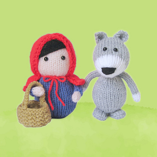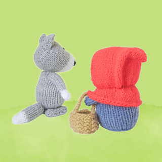 Little Red Riding Hood was on their way to visit Granny, and met the Big Bad Wolf. Designed by Amanda Berry @fluffandfuzz, the toys are knitted in acrylic DK yarns on single pointed needles (not in the round).