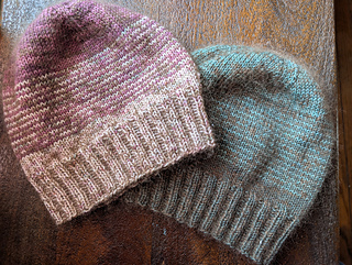 Notes: This hat is made from the bottom to top starting with a 2x2 ribbing. The hat body is worked in the stockinette stitch switching colors every round for a fun 2 tone look. Two yarns are held double for the whole pattern. I only used one skein of the lace weight yarn, and switched the fingering colors back and forth. if it makes it easier you can use 2 different skeins of the lace weight.