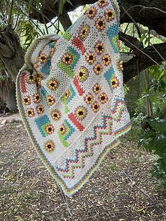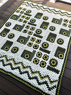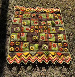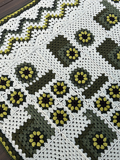 Retro Zag is a fun floral + graphic design with a Mid-Century Modern feel using familiar relaxing crochet motifs and an easy join. It is not a one-piece design but the pieces fit together perfectly and your finished result will be unique and satisfying. A little similar in feel to one of our previous CALs, Deco’Ghan, but easier.