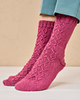 THIS SPRING-LIKE design from Sarah Hatton features an interesting fabric, with textured cross motifs that are created by working a series of elongated stitches and wrap stitches. The socks are knitted from the toe-up, and Sarah has used Judy’s Magic Cast-on method. She has chosen The Fibre Co.’s Amble sock yarn, a lovely blend of Merino wool, suri alpaca and recycled nylon fibres which have been treated using an eco-friendly alternative to the superwash process. Amble comes in a wide choice of gorgeous colours.