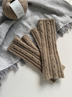 The wrist warmers are worked in the round from the wrist towards the fingers. They begin with an Italian cast-on and continue in rib pattern. A gusset is worked for the thumb. Both the back of the hand and the thumb are finished with an Italian bind-off. Right and left wrist warmers are identical and will take shape to fit the corresponding hand once worn. The length can easily be adjusted as needed. The pattern is worked from chart or written instructions.