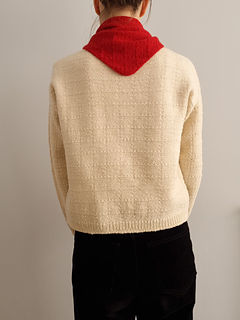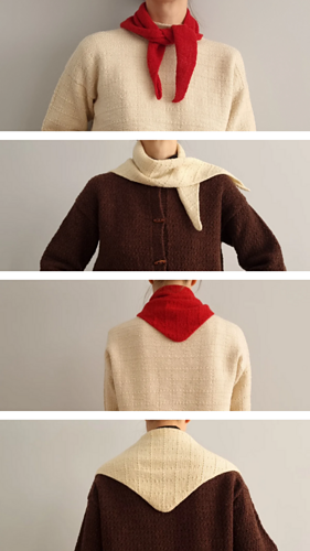 The scarf is worked seamlessly, back and forth, starting from one end and continuing across the whole width, towards the other end. Increases are made on every right-side row until the midpoint, then they are substituted with decreases on every right-side row to shape the second half of the shawl.