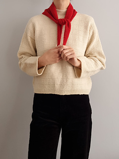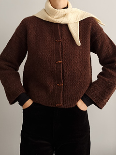 This triangular shawl draws inspiration from the architectural surfaces and classical art. Its name, Rilievo, honours the Italian tradition of sculptural forms that rise subtly from stone, reflected through a pattern of soft, structured rectangles.