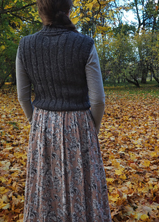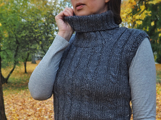 Meet Roam — a cozy vest with a roomy cowl neck, simple cables, and just the right kind of comfort for in-between seasons. It’s worked in aran-weight yarn so it works up quickly. The simple cable pattern is very grounding to knit. It’s a perfect combo of soothing rhythm and holding your attention. So you are still focused and present and don’t drift too far away.