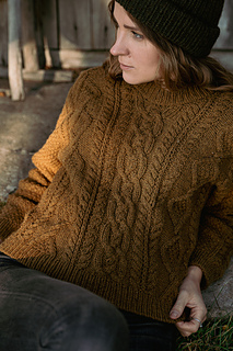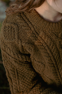 The sweater is worked top-down starting at the back neck. The upper back is worked flat to the the underarms. The upper front is picked up along the shoulders and worked flat with the neckline shaping down to the underarms. The pieces are then joined and the body is then worked in the round to the hem. The sleeve stitches are picked up around the armholes. Sleeves are worked in the round using either the Magic Loop technique or double-pointed needles. The neckline ribbing is worked last.
