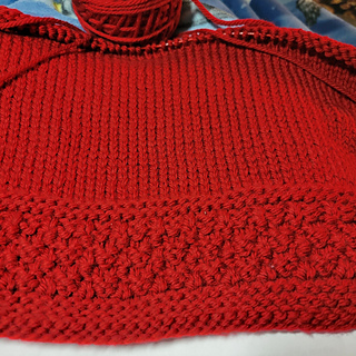 Pattern has a lovely textured trim, is worked bottom up in pieces and seamed.