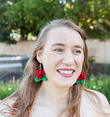 You’ll learn how to crochet a small rose with leaves and turn it into a wearable pair of earrings using simple techniques.