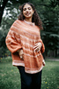 A large, delicate swoncho with a textured pattern that mixes slip stitch mosaic stripes and ruching.