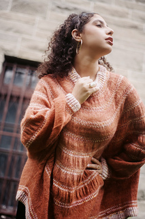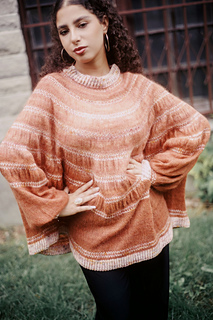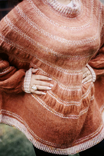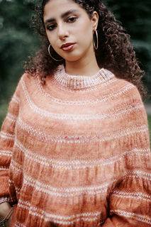 The seamless design is worked top-down in the round with short rows shaping the back yoke. Made from fingering merino and lace suri alpaca, it’s light yet warm, perfect for cool summer evenings.