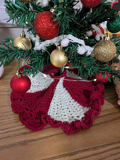 Everything’s better with ruffles! This Ruffled Mini Tree Skirt is only 12 inches in diameter, to fit a small, tabletop tree. Sew it closed, and it would look great under other decorations as well, or even as a trivet. Using only one color at a time, this easy design creates wedge shaped sections, surrounded by a ruffled edging.