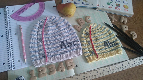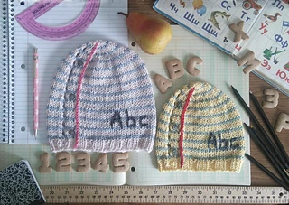 This Pattern is designed for you to be able to knit a fun beanie for any age of student or NB photoprop in an easy way. Design has hand stitching (ABC - embroidery), but if you don’t feel like it, simply use ready-to-sew ABC buttons instead.