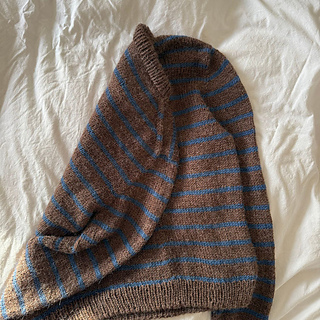 Strikkefasthed: 17 masker x 22 pinde i glatstrik på pind 5 mm = 10 x 10 cm