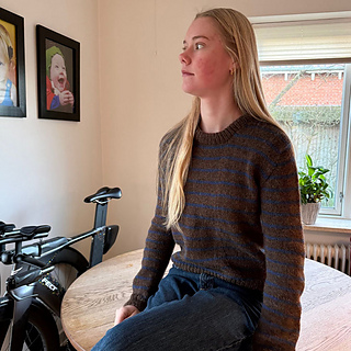 Saga Sweater strikkes oppefra og ned i striber. Først strikkes øverste del af ryggen med udtagninger. Derefter strikkes skuldrene ud fra opsamlede masker øverst på rygstykket. Der samles masker op langs skuldrene, og resten af bærestykket strikkes samlet på rundpinden, først frem og tilbage og siden rundt. Kroppen strikkes rundt på rundpind, og ærmerne strikkes rundt på strømpepinde eller med Magic Loop-teknik. Til slut strikkes en ombukket ribkant i halsåbningen.