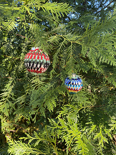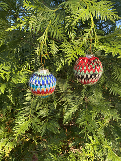 Slightly Scrappy Ornament: 8 grams/ 15 yards of solid color worsted weight yarn & 8 grams/ 15 yards of scrap worsted weight yarn