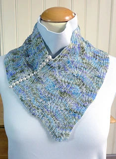 My sister-in-law Joan said that this little scarflet’s stitch pattern looked like a sea of pearls. It is because of the yarns that were used and the color but it made me think of a beaded decorative edge, optional, of course, but quite attractive.