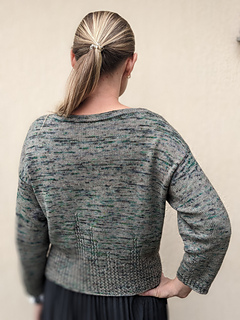 The sweater is worked from the top down, starting with casting on stitches for the back. Short rows are used to elevate shoulders and to shape the back neckline. The back is then worked to the underarms. Each front shoulder is worked separately, shaping both shoulder and front neckline. After the neckline shaping is completed the front is worked straight to the underarms. Then the body is joined to work in round and after working part of the body in Stockinette in round, the cable pattern is introduced. It extends, seemingly randomly, through the remaining body until the whole circumference is covered in cables.