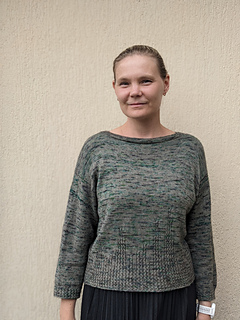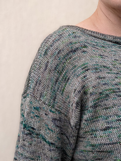 The sweater has a loose fit with about 25 cm / 10 in of positive ease.