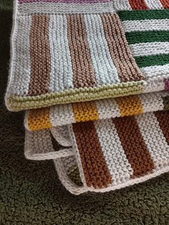 Each finished square uses roughly 10g of MC and 10g of CC. You will also need a little extra of your MC for the i-cord edging.