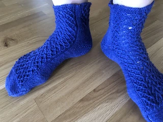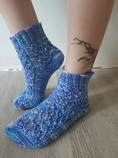 9 stitches by 11 rounds in stockinette = 1” / 2.5 cm, after blocking. Gauge is crucial in obtaining the correct fit. Changes in gauge will result in a size difference for your finished socks.