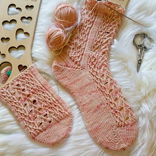 The pattern is written for the magic loop method for knitting socks; however, the design could be worked on double-pointed needles or mini-circulars instead should you prefer.