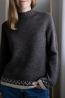 Cozy mock turtleneck with raglan sleeves and a bit of colorwork. The sweater is worked seamlessly from top down and requires minimal finishing.