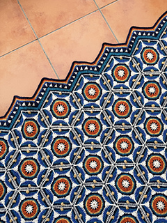 I am a fan of surface pattern and look for it everywhere. Wallpaper, greetings cards and fabrics create a huge amount of inspiration for my crochet designs, but it is ceramic tiles that probably have me the most enthralled. Needless to say, I felt like a child in a sweet shop when we visited southern Spain, where Moorish rule has historically shaped architecture, agriculture, language and culture.