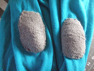 (I tend to use baby alpaca or merino to knit patches for my sweaters, esp. the cashmere ones. As the sweater’s elbows wear out, the softer yarn patches won’t irritate my pointy elbows!)