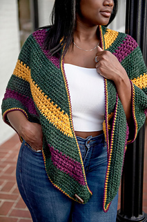 What is the Shawldigan? Shawl + cardigan, of course! By adding buttons, you will always have a “shawl pin,” use the stitch spaces as button holes to wear like a cocoon cardigan, or wrap the wings across your body and then button like a poncho that won’t fly open. It can be worn as a traditional triangle shawl, or wrapped across you shoulders like an oversized scarf.