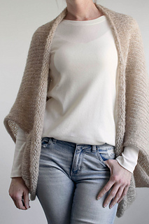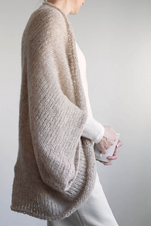 A lightweight summer shrug that’s worked flat as a simple rectangle, then seamed at each end to create soft, draped sleeves. It features a relaxed, oversized silhouette with an open front and effortless construction. Knit in brushed alpaca held double, the fabric is impossibly light with a signature halo that softens every stitch. A quiet staple for every season, the Halo Shrug is the kind of timeless piece you reach for again and again.