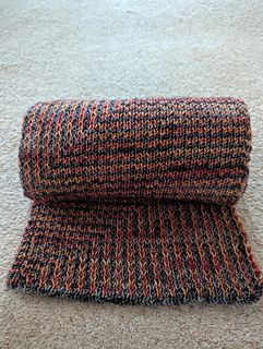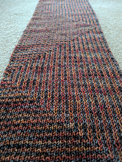 This scarf could be said to be the grown up cousin of Striped Scarf Two Ways. Whereas that has horizontal stripes on one side and vertical on the other, this combines the two. The pattern switches from horizontal to vertical on both sides, zigzagging across the face of the scarf and making it truly reversible. Although it uses a relatively light weight yarn, the effect is a thicker, squishier scarf than you might imagine.